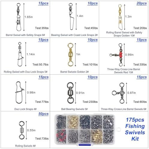 • KIT DE 175 MOSQUETONES DE PESCA: incluye mosquetones de barril, mosquetones de rodamiento de bolas con mosquetones Coastlock, mosquetones de barril con mosquetones de seguridad, mosquetones de 3 vías, mosquetones de rodamiento de bolas, mosquetones de barril rodante con mosquetones, mosquetones de barril rodante, mosquetones de barril de tres vías, mosquetones Duo-Lock