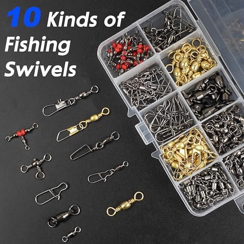 Kit de 175 piezas de mosquetones de pesca - Mosquetones de rodamiento de bolas, mosquetones de 3 vías, accesorios de terminal de línea de pesca, caja de aparejos para señuelos y lastres