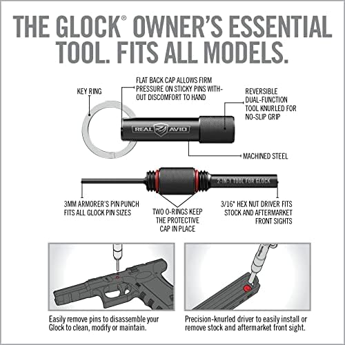 - Essential Glock Maintenance Tool: Combines a magnetic 3/16" front sight tool and a 3mm pin punch, enabling easy installation, adjustment, and removal of sights and pins on all Glock models