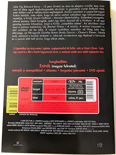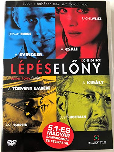 Confidence DVD 2003 Lépéselőny / Directed by James Foley / Starring: Edward Burns, Rachel Weisz, Andy García, Dustin Hoffman / UPC 5999551920514 / 5999016344275 / REGION 2 PAL DVD / MADE IN Germany / AUDIO: Hungarian 5.1, English 5.1 / SUBTITLES: Hungarian / Total Runtime: 97 minutes /// English Summary: Confidence is a 2003 crime drama film starring Edward Burns, Dustin Hoffman, Andy Garcia and Rachel Weisz, directed by James Foley, and written by Doug Jung. A group of grifters rip off their latest mark and celebrate, while de facto leader of the group Jake Vig (Edward Burns) explains the art of the con. When one of the four, Big Al (Louis Lombardi) is found shot to death, the other three learn that the latest money they stole actually belonged to a local L.A. crime lord called The King (Dustin Hoffman). Jake proposes that the grifters work for the King and steal money from Morgan Price (Robert Forster), a rival who owns a bank. Jake enlists the aid of his remaining partners, Gordo (Paul Giamatti) and Miles (Brian Van Holt), and also convinces an independent con artist named Lily (Rachel Weisz) to round out their foursome. The King, a ruthless killer who suffers from ADHD, demands that one of his men, Lupus (Franky G), also come along. /// Hungarian Summary: Jake Vig, az okos és elegáns svindler épp most van túl élete egyik legfurfangosabb akcióján: a gyanútlan Lionel Dolbytól több ezer dollárt csalt ki néhány társa segítségével. Amikor azonban a csapat két tagját holtan találják, Jake rájön, hogy az akció szálait valójában egy bűnszövetkezet vezetője, a Király mozgatta. Jake-et kemény fából faragták, ezért úgy dönt, bosszút áll a Királyon. A cél egy gazdag bankár kifosztása, majd a Király "csapdába ejtése". Az akcióban részt vesz a pimasz zsebtolvaj, Lily is, akit csaliként vet be Jake. ...