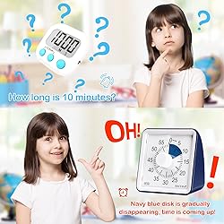 Time Management -- What can you get done in 60 minutes? Improve time management, perform tasks effectively, complete your work, and encourage productive learning with the Secura 60-minute visual classroom timer Easy to Use -- Turn the dial clockwise to adjust the time. To turn the timer off: turn it back to zero. Turn off the ringer: clockwise to "5" and then quickly back to "0" Supports Concentration -- The navy blue disc delivers a serious, professional look designed for focused work environments and structured daily routines. Helping users stay mentally organized during work and study sessions Adjustable Volume & Ring Duration -- Set the tone to loud(about 70 dB) or low(about 50 dB), and the alarm time to 3 or 60 seconds. NOTE: Requires 2 "AAA" batteries (Not Included). Do not mix old and new batteries Applications -- Great for classroom, home, and office settings. Makes an excellent classroom timer, countdown timer, study timer, toddler timer, kids timer, silent timer, kitchen timer, timer clock, time tracker, and more