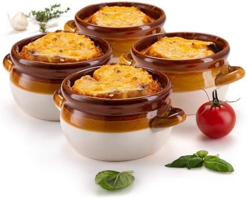 KooK French Onion Soup Bowl, French Onion Soup, Crock, Oven Safe Bowl, Ceramic, Handles, Stoneware, Dishwasher, Microwave, Oven & Broil Safe 16oz Standard Capacity & 18oz Full Capacity Set of 4