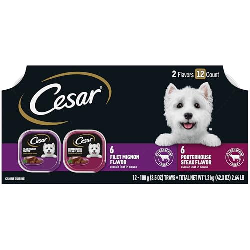 Cesar Wet Dog Food Classic Loaf in Sauce Filet Mignon and Porterhouse Steak Flavors Variety Pack, 3.5 oz. Easy Peel Trays (12 Count, Pack of 1)