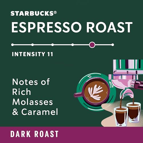 Enjoy the same high-quality Starbucks coffee you love, now crafted as dark roast pods by Nespresso for a rich, satisfying brew at home. These recyclable aluminum capsules are designed to preserve flavor and freshness while supporting sustainability. Each cup of this bold dark roast coffee starts with a masterfully roasted blend of Latin American and Asia/Pacific beans, developed to bring out deep, caramelly sweetness and a full-bodied finish. Expertly roasted to perfection, it’s Starbucks’ signature dark profile -- now available in convenient dark roast pods for Nespresso OriginalLine machines, including Essenza Mini, Pixie, CitiZ, Expert, Lattissima, KitchenAid, and Creatista.