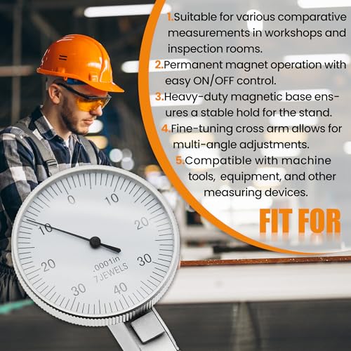 - 𝐇𝐈𝐆𝐇 − 𝐐𝐔𝐀𝐋𝐈𝐓𝐘 𝐂𝐎𝐍𝐒𝐓𝐑𝐔𝐂𝐓𝐈𝐎𝐍 - Built with a high-quality brass body, the machinist indicator ensures strong anti-magnetic properties. Additionally, the dial is set with jewels to improve durability and shock resistance, making it ideal for long-term use in industrial environments.