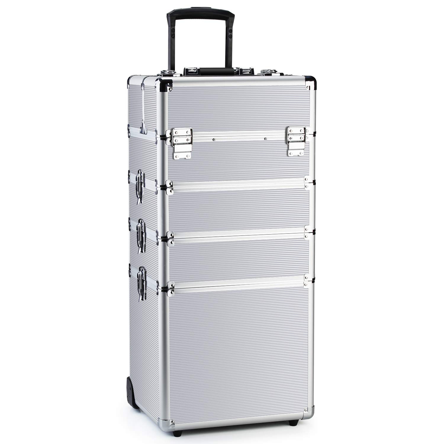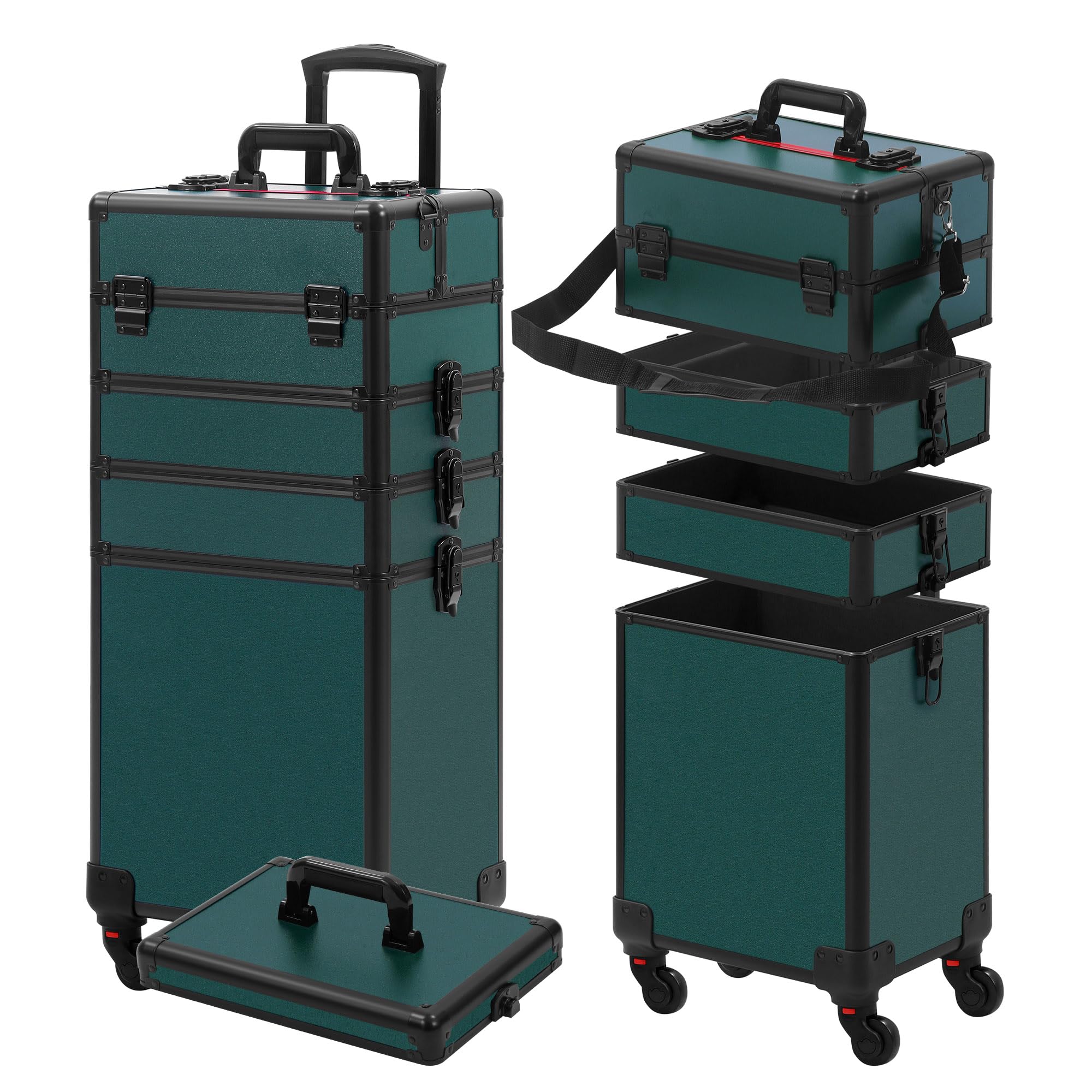 - 【ESTACIÓN DE TRABAJO AUTOSUFICIENTES】- Las patas telescópicas resistentes se pueden instalar y ajustar para mantener el maletín a 4 alturas ajustables con 16.3"(41.5cm)/24.4"(62cm)/26.6"(67.5cm)/28.5"(72.5cm) del suelo, ideal para uso en salones, exhibición en centros comerciales, y para maquillistas independientes y competidores de baile; Las patas en forma de cuenco también son ajustables para adaptarse a suelos desiguales; Asa telescópica y 4 ruedas desmontables con movimiento de 360° para un fácil transporte.