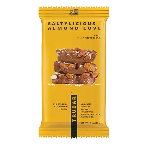 TRUBAR Vegan Protein Bar, Saltylicious Almond Love, Gluten Free, Plant Based, High Fiber, Dairy Free, Low Fat, Non GMO, No Sugar Alcohols, 12G Lean Protein, 13G Fiber, Healthy Snack Bars, 1 CT