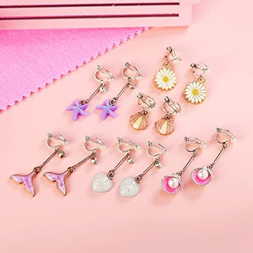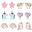 PinkSheep Clip On Earrings for Little Girls, Bling Rainbow Earrings for Kids Party Favor