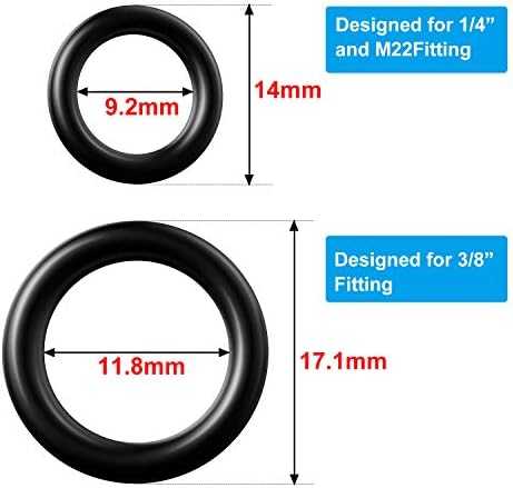 - Considerable quantity: 2 sizes, 25 pieces each, for replacing O ring seals in accessories for 1/4 inch, 3/8 inch, and M22 quick connect connectors; Widely use in daily life to repair leaks in water pipes, faucets, pressure washers, and shower rooms, as well as in industrial oil seal products, hose joints, pressure pipeline repairs, and air or gas connections