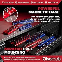 - Olsa Tools Magnetic Socket Organiser, 3-Piece Socket Holder Kit, 1/2-Inch, 3/8-Inch and 1/4-Inch Drive, SAE Red, Holds 68 Sockets, Professional-Quality Tool Organiser