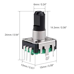 - Description: A rotary encoder, also called a shaft encoder, is an electro-mechanical device that converts the angular position or motion of a shaft or axle to digital output signals. Rotary encoders are used in a wide range of applications that require monitoring or control, or both, of mechanical systems, including industrial controls, robotics, photographic lenses, computer input devices . Specifications: Adjustment method: 360 Degree Pin Numbers: 7 Number of digits: 24 digits Rated Voltage: 5 Volt Shaft Type: D Type Shaft Diameter: 6mm/0.24" Shaft Height: 14.3mm/0.56" Total Dimension: 15mm x 13mm x 24mm / 0.59" x 0.51" x 0.94"(L*W*H) Note: Avoid storing the products in a place at high temperature, high humidity. Do not touch the product with water.