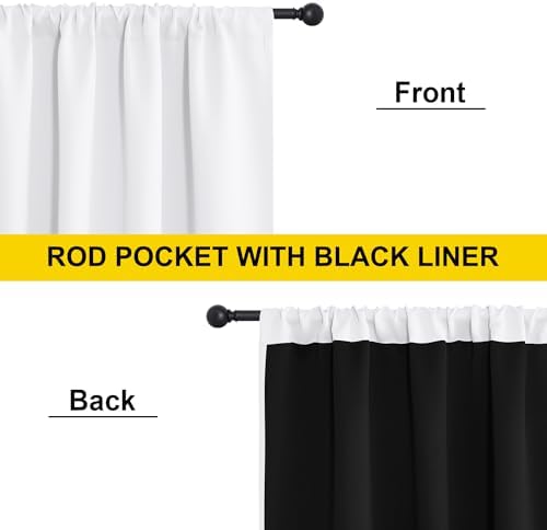 NICETOWN 100% Blackout Curtain Panels, Rod Pocket Window Curtains with Black Liner for Nursery, 84 inches Drop Cold and Full Light Blocking Draperies (White, 2 Pieces, 52 inches Wide Each Panel)