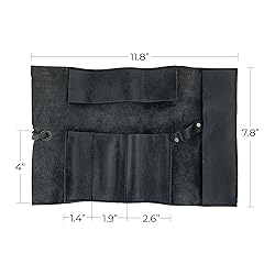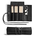 Hide & Drink, Rustic Pencil Roll Pouch, Multi-Purpose Storage Wrap for Scissors, Earphones, Organizer for Craft, Full Grain Leather, Handmade, Charcoal Black