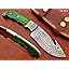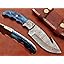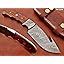 Características: cuchillo despellejador total de 9.5 pulgadas de largo con gancho de tripa, hoja de espiga completa de 4.5 pulgadas de largo con función de gancho de tripa. Disponible en madera de nogal, KOW, verde y azul, la escala dentada con dedos enteros de 5 pulgadas de largo con refuerzo de acero de Damasco La báscula brilla con un alfiler de mosaico, 2 alfileres de acero y un orificio de inserción para mayor resistencia Las hojas de espiga completa se consideran más fuertes y duraderas que las no con espiga completa, hoja de punto de caída de acero Damasco con patrón de torsión de aproximadamente 5 mm de grosor Hasta el cuchillo despellejador de ganchos estándar Viene con una funda de cuero extra gruesa y robusta de alta calidad. La funda tiene una trabilla para insertar el cinturón y se puede llevar en el cinturón. La hoja está hecha de acero de Damasco forjando acero 1095 y 15N20 con alto y bajo contenido de carbono. Nuestro acero de Damasco se prepara forjando más de 465 capas de acero con alto y bajo contenido de carbono. La hoja ha recibido un excelente tratamiento térmico para que esté bien endurecida. Nuestra dureza comprobada es de 56 a 58 HRC. Consejos para el cuidado de los cuchillos de Damasco: los cuchillos de acero damasco y los cuchillos de acero con alto contenido de carbono 1095 son diferentes de otros cuchillos de acero comunes, ya que debido a su alto contenido de carbono, pueden oxidarse si no se cuidan adecuadamente. Si se ha oxidado accidentalmente, utilice el WD40 para quitarlo. Nunca guarde el cuchillo durante mucho tiempo en una funda de cuero. El cuero puede absorber agua y oxidar el cuchillo. Limpie siempre la hoja después de usarla y aplique aceite o cera (utilice aceite de cocina en el cuchillo de chef) antes de guardarla, para prolongar su vida útil y durabilidad.