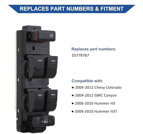 - ✈【Install Location】This switch replaces the left or driver side power window switch also known as the master power window switch on your Chevy Colorado / GMC Canyon / Hummer H3/H3T, controls all power windows as well as the door locks and window locks.