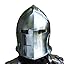 Traditionally, barbuta helmets didn't feature visors, although the needs of the warrior are what dictate the evolution of the helm. Thus, this Visored Barbuta Helmet is as protective as a typical barbuta and then-some, thanks to the added visor. The barbuta was originally designed in medieval Italy, although because of how effective and useful the helmet was, it spread to other regions as well. This helmet alters the typical design of a barbute by including a protective visor. The helmet is crafted from quality steel and features an incredible looking dark metal finish, which makes the helmet look aged and worn. It is a full-sized replica helmet that is fully wearable, and when worn, Measurements: Medium: Fits a 23 to 26 inch head circumference Large: Fits a 24 to 28 inch head circumference. MANUFACTURED & SOLD BY AnNafi