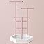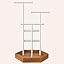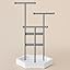 - [Sturdy, Durable, and Stable] The jewelry stand is a stable and safe haven for your treasured jewelry, thanks to a hexagonal base and 3 metal T-bars arranged in a triangular distribution and securely screwed to the base