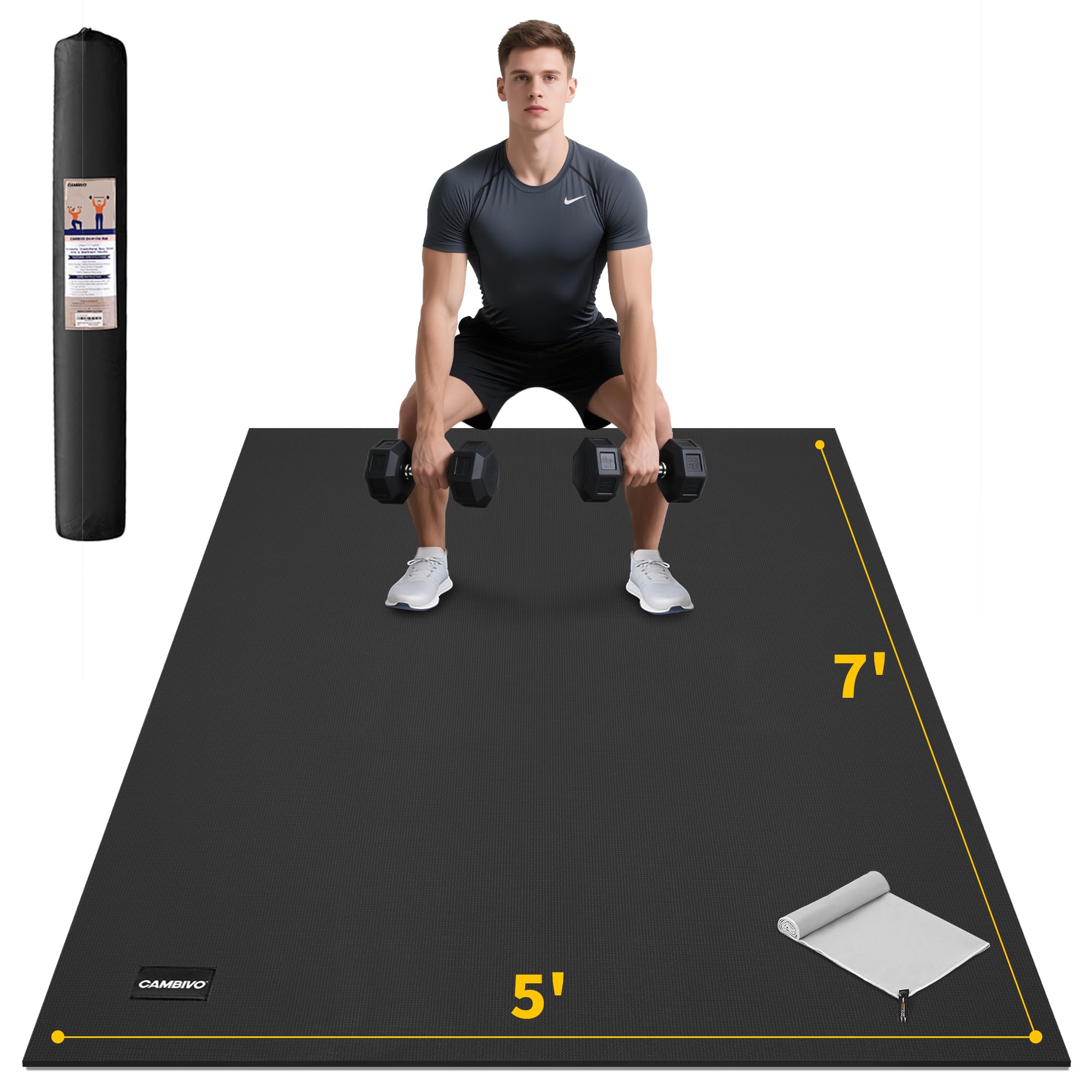 CAMBIVO Large Exercise Mat for Home Workout, 8'x6'/7'x5'/6'x4' (7 mm) Extra Thick Exercise Mat for Home Gym, Shoe-Friendly, Non-Slip Gym Mat for Jump Rope, Weights, Cardio, Fitness