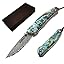 - PREMIUM CRAFTSMANSHIP: Stunning abalone seashells covered with crystal-clear resin combined with 71-layer Damascus steel creates a unique handcrafted folding knife that stands out in any collection. The perfect blend of natural beauty and modern engineering.