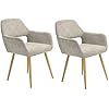 Homy Casa Dining Chairs Set of 2 with Arm Fabric Mid Century Side Kitchen Chairs with Solid Painting Steel Leg for Dining Room Bedroom Leisure Chairs Set, Beige