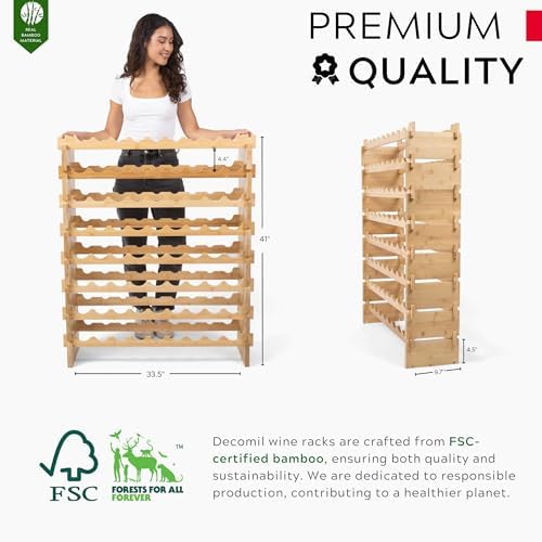 - [High-Capacity Wine Rack ]✔️ The Decomil 8-tier stackable bamboo wine rack holds up to 72 bottles, making it perfect for organizing and showcasing your wine collection. With assembled dimensions of approximately 41" x 10" x 33.5", it’s compatible with standard 750 ml wine bottles, including Bordeaux-style wines.