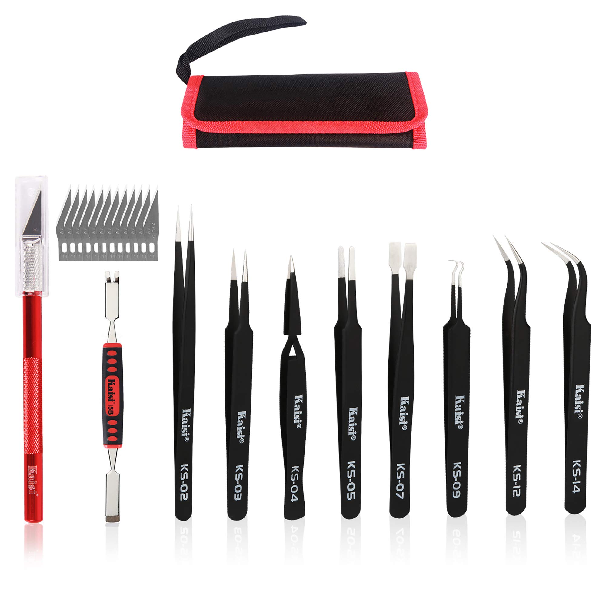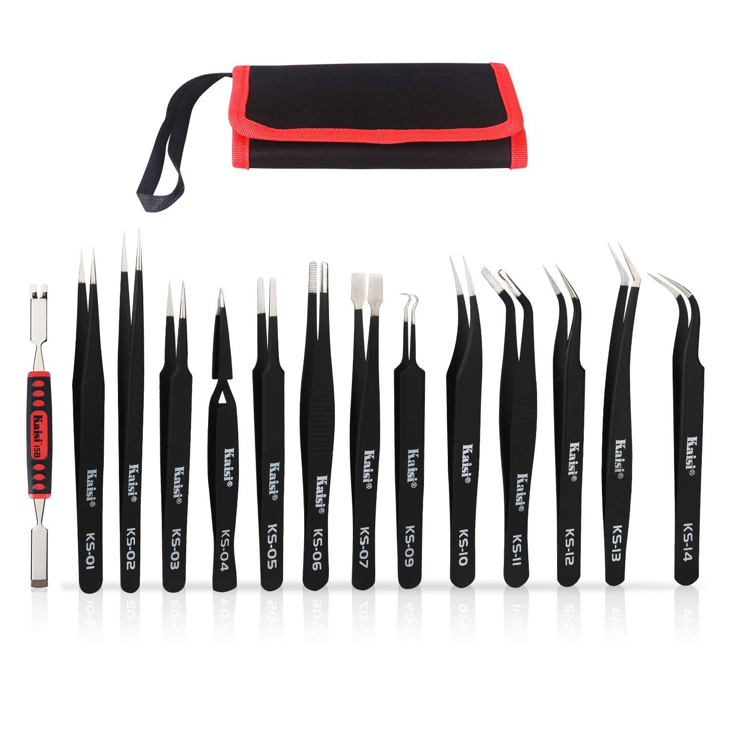 Kaisi 13 PCS Precision Tweezers Set Anti-Static ESD Tweezers Kit with 13 Precision Non-Magnetic Stainless Steel Tweezers With tweezers storage bag