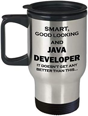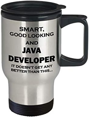 Funny Cute Gag Gifts For Java Programmer Developer - Smart And Good Looking - Coffee Tumbler Insulated Travel Mug Programming Language Computer Software Engineer Web HTML Website