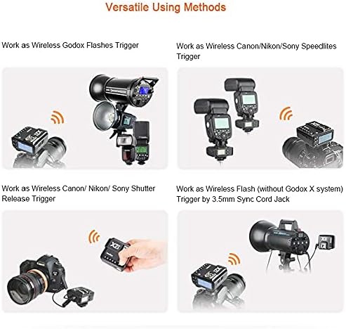 - Compatible with Godox Flashes-- X2T series with built-in 2.4G wireless X system, X2TS for Sony will be compatible with Godox Flashes, strobes and monolights. work perfect with Godox V1S TT685S TT685IIS TT350S V860III-S V860II-S TT600 AD200 Pro AD400 Pro etc