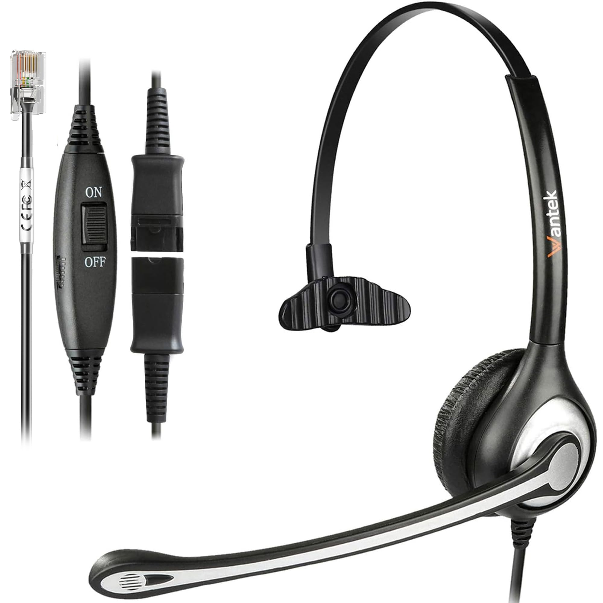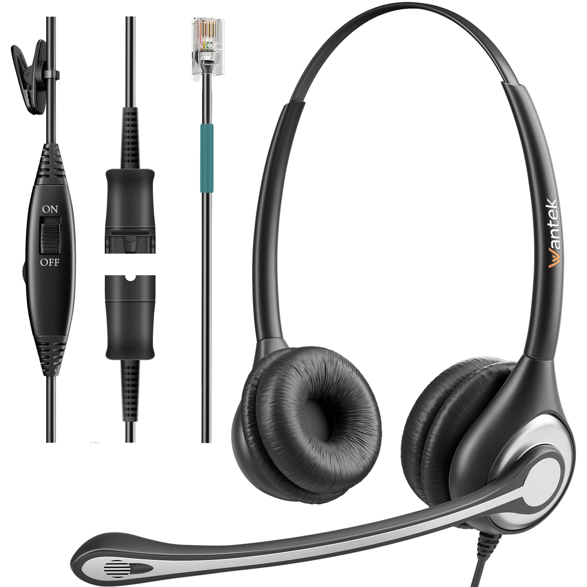 Wantek Phone Headset with Microphone Noise Cancelling, Telephone Headsets 2.5mm Jack Work for Panasonic AT&T ML17929 Vtech RCA Cisco Uniden Polycom Grandstream Home Office Cordless Phones(F600J25P)