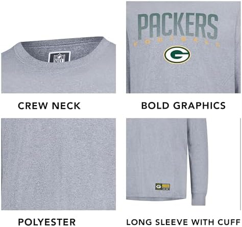 STYLE AND DESIGN: Our Long Sleeve T Shirt features crew neck, regular hemline, long sleeves with ribbed cuffs, team color and gray body with high quality screen print graphics of your favorite NFL team embroidered on the front