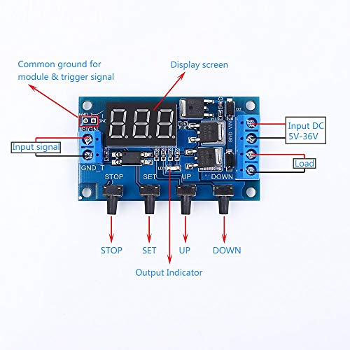 Programmable Timer Delay Relay Module DC 5V-36V Adjustable On/Off Cycle Timer Switch with Dual MOS Output Digital Display Emergency Stop Protective Case for Smart Home Automation DIY Electronics
