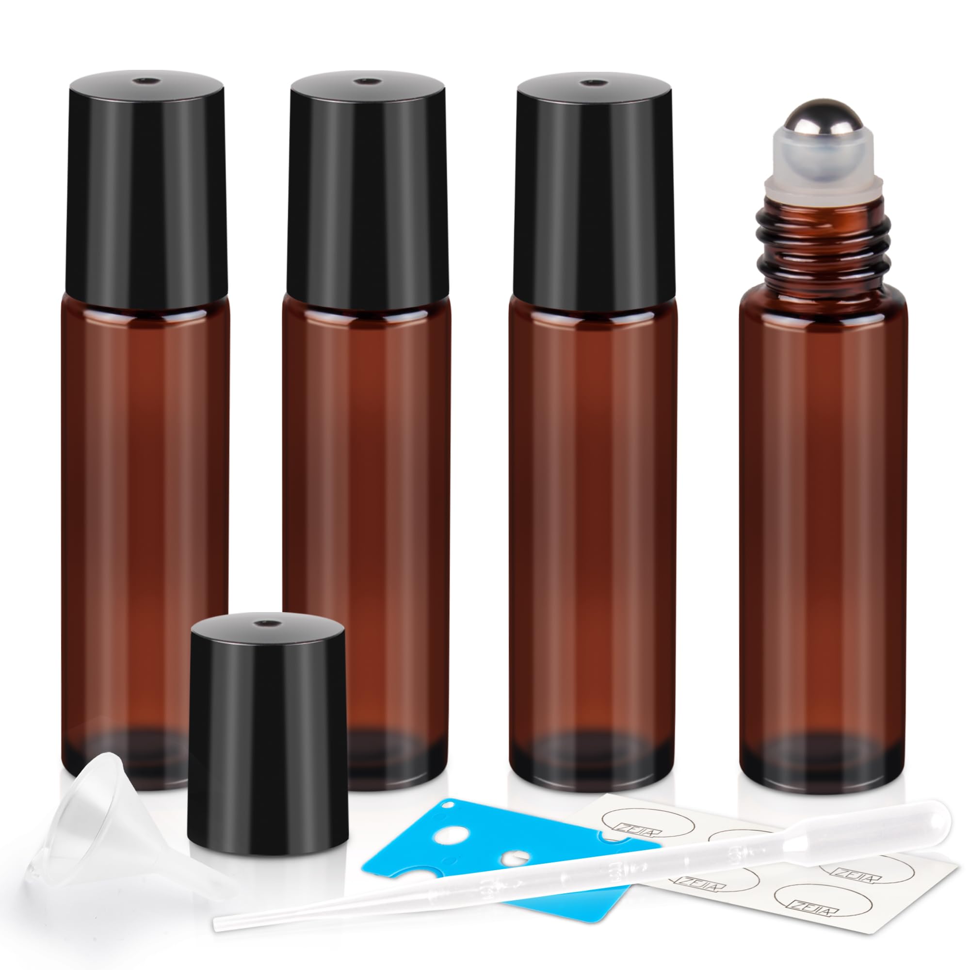 Eco-Fused Refillable Glass Roll-On Deodorant Bottles 4-Pack - 1.7 Oz (50 ml) - Leak-Proof with Twist Cap - 20pcs Labels Included - for DIY Homemade Natural Deodorant, Sunscreen, Moisturizer