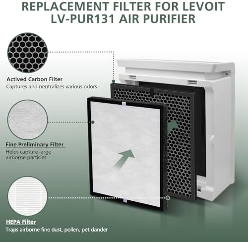 - 【 COMPATIBLE】Premium compatible HEPA filter replacement set for Levoit Air Purifier LV-PUR131 and LEVOIT LV-PUR131S Smart Wi-Fi Air Purifier.Get back to having a clean air to breathe again