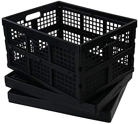 Morcte 34 L Plastic Rectangular Collapsible Crates, Folding Crates Storage, Pack for 3, Black