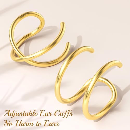 PAGOW Fake Helix Ear Cuff Cartilage Earring No Piercing 925 Sterling Silver,14K Gold Simple Criss Cross Double Lines Adjustable Minimalist CZ Women Men Clip adornment valentine's day Gifts