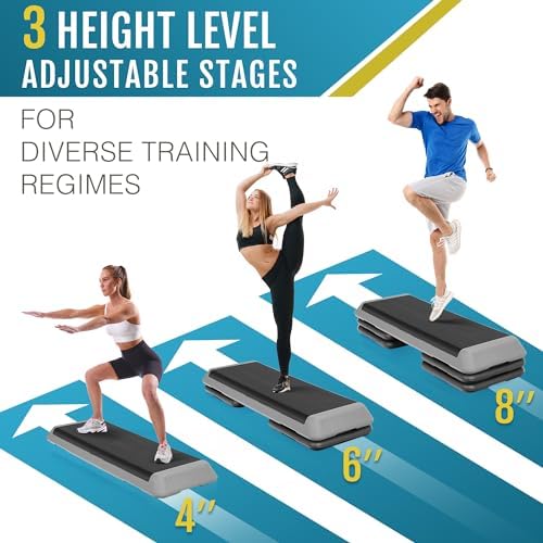 - 『Height Adjustable for Tailored Workouts』Equipped with 4 detachable risers, our stepper allows you to effortlessly adjust the height according to your workout intensity and personal preference. With an impressive weight capacity of 550 lbs, it caters to users of all sizes and fitness levels. Choose from 3 height options: 4”, 6”, and 8” to customize your experience and challenge yourself as you progress