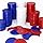 These red white blue plastic poker chips are study and easy to stack. Plastic poker chips are a great addition to your party supplies for any casino themed event.