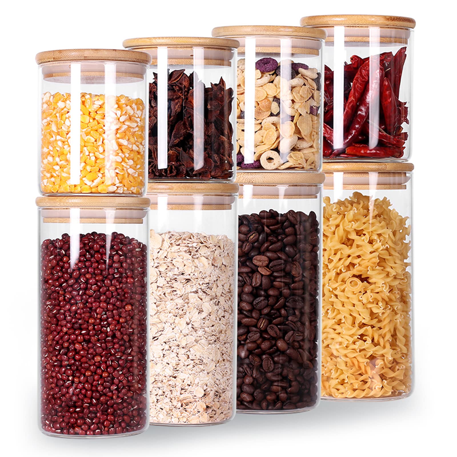 - [Highly Glass] The clear food storage jars are made of high-quality borosilicate glass and BPA free silicon which withstand temperature 0℉ to 400℉, you can put this airtight food canister in the pantry, kitchen or fridge.