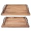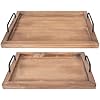 Besti Rustic Vintage Food Serving Trays (Set of 2) | Nesting Wooden Board with Metal Handles | Stylish Farmhouse Decor Serving Platters | Large: 15 x2 x11 - Small: 13 x2 x9 inches (Rustic Burnt)