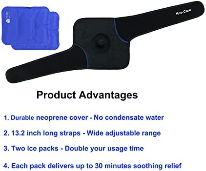 - Double Your Usage time. Koo-Care knee support brace comes with 2 flexible non-toxic gel ice packs, you can double the time of relief and comfort without waiting after they are refrigerated in the freezer for at least two hours. Of course, they can be used on both of the two knees if needed or in emergency.