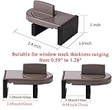 Size: Window locks length: 2.4 inch, width: 1.6 inch, height: 1 inch. Packing: 4 Pieces. Color:Grey Note: Fit on window rail thickness rang from 0.59" to 1.26" and track high more than 0.59". Please measure the thickness of your window rail carefully. Install: Close or open the window before installing the window stop block; insert the leg tightly into the window groove, turn the knob clockwise until the product is fixed. Use 2 locks in heavy windows/doors to increase security... Advantage: Rubber irons and window stoppers are covered with rubber can increase friction and avoid scratching windows and noise. Please note: Only applicable to sliding windows with window tracks, where the distance of the window track must be greater than 0.59 inch and less than 1.65 inch (not suitable for other window types or other track dimensions).