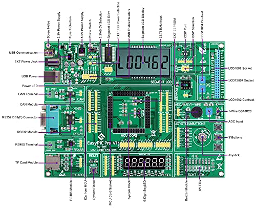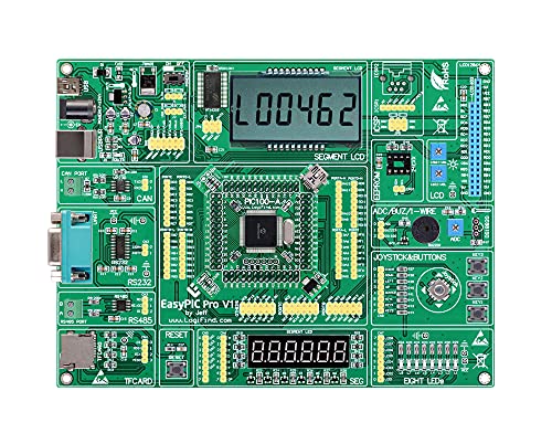 easyPIC pro combines support for three different architectures: dsPIC33, PIC24 and PIC32 in a single development board It contains many on-board modules, including USB,CAN,RS232,RS485,Micro-SD Card,Segment LCD display,6-digit Segment LED Display,External EEPROM,Buzzer,ADC Input Potentiometer,1-Wire Temperature Sensor DS18B20,Joystick,Eight user LEDs,LCD 2x16 Characters Display(socket), GLCD 128x64 Display(Socket) and MCU Cards Socket which supports 50+ dsPIC/PIC24/PIC32 microcontrollers via MCU cards. easyPIC pro comes with a MCU Card with a microcontroller as the title says.We have designed three type MCU Cards:PIC64-A,PIC80-A and PIC100-A,which are also sold separately, if you'd like a spare one to integrate into your own hardware or for any other reason. Package Contains This product should include the following components: easyPIC pro with the Card as you select, ---------------------1 pcs; 8P-8P DIY wire, ----------------------------------------------------------3 pcs; 1P-1P DIY wire, ----------------------------------------------------------8 pcs;