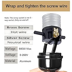 Medium base Lamp socket with push ON/OFF to fix or create a new floor and table lamps or light fixture, DIY Project, UL listed EASY TO INSTALL:With brass and silver screws for black and white wire connection,then screw-in edison vintage lamp sockets are easy to put various kinds of bulbs on, easily matching any styles of decoration The bottom cap is threaded to accept a 1/8 IP rod or nipple,with full Uno Thread and Ring Power – This lamp socket has an electrical rating of 250VAC and 250W It consists of 3 pieces: a bottom cap, a top cap, an interior,a ring and cord grips