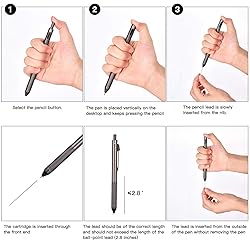- This pen stores three ink refills, a 0.7mm lead pencil, and an eraser all in one. Once you use this unique and subtle pen, you’ll never want to be without it. SMTTW has gravity assisted mechanism that makes choosing your ink ballpoint simple and conveniently. Simply hold the pen at a 45-degree angle, rotate the pen in hand till the desired color is face up and press the thumb advance button. To retract and choose another refill simply depress the thumb switch located on the clip. To access the eraser just pull the thumb advance button. SMTTW multicolor pen with engraved grip makes it easy to hold and use conveniently. Each pen comes with black, blue, and red ink refills as well as 0.7mm lead. This eye-catching pen has everything you need for on-the-go writing, business, teaching, travel, drawing, and more! To replace refills, simply unscrew the grip from the body and gently pull the selected refill out. Replace with a new refill by looking down into the barrel and carefully pushing the end of the refill back into the selected circular chamber. To refill lead, pull gently pull the pencil mechanism out, insert the lead and carefully insert pencil back into the specific chamber. Each ball pen is equipped with an automatic pen cartridge, with the pencil filling 0.7mm.