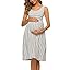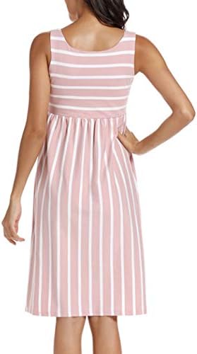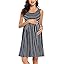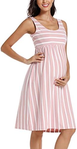 Ecavus Womens Maternity Tank Dress Stripe Color Block Sleeveless Knee Length for Baby Shower