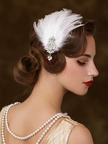 - ✓ Design: Add bit of flair to any vintage ensemble, this graceful 1920s hair clip featuring soft ostrich feathers, which is bursting from a silver crystal rhinestone detail. Secured to a hair hoop/clip for a simply elegant affair!