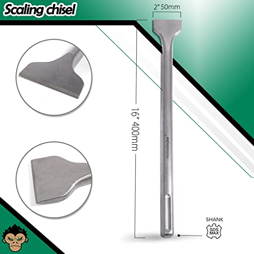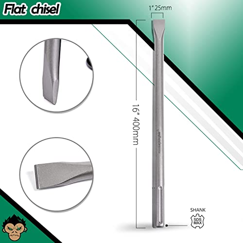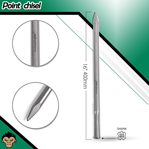 Monkey King Bar SDS Max Bits 16" Chisel Set - 3pcs Masonry Drill Bits for All Brand Hammer Drills - Point, Scaling, and Flat Chisels