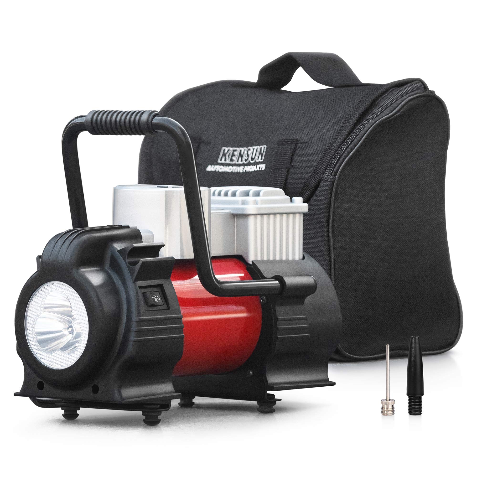 - AC/DC FOR CAR AND HOME: Kensun’s unique AC/DC switching with 12V car cigarette light plug as well as 110V wall plug for home outlet makes this inflator more useful since you can use it anywhere.