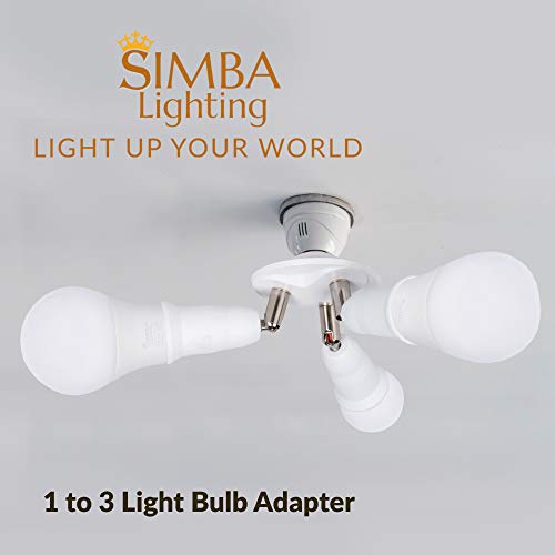Simba Lighting E26 Light Bulb Socket Adapter Splitter to 3 Heads White Finish with Fully Adjustable Angles for Wide Coverage, Indoor and Outdoor Use for Ceiling Light or Lamp, Medium Screw Base