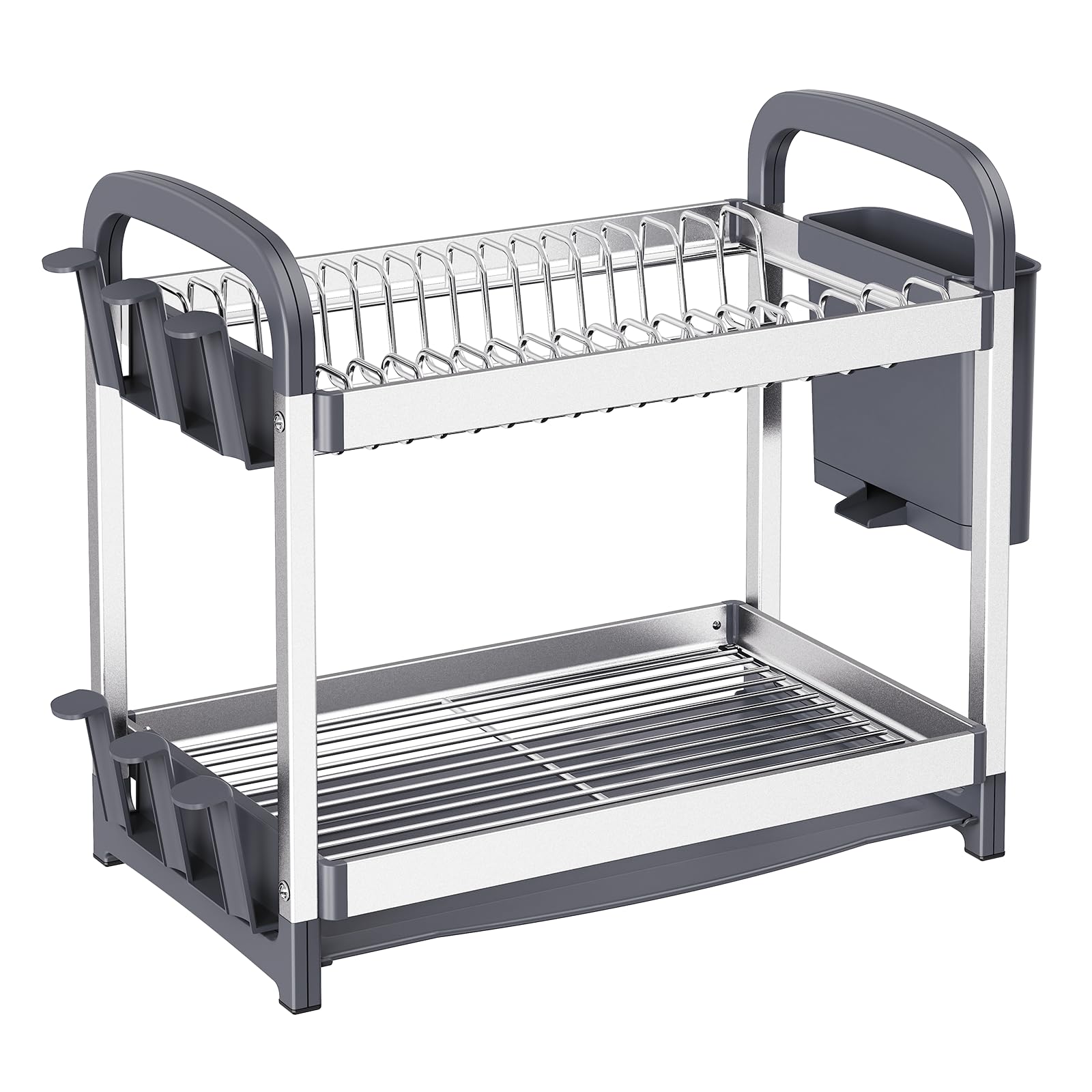 Tendedero de platos plegable de bambú Earth's Dreams, doble nivel para platos, estante para secar platos plegable, estante para platos de madera para encimera de cocina, compacto, ahorra espacio, ideal como regalo